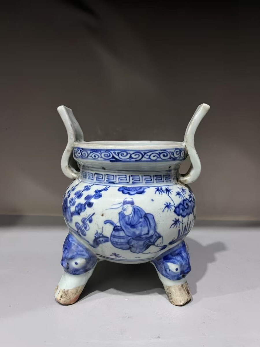 - 中国古美術 清時代 青花 染付香炉 唐物 茶道具 陶磁器 骨董 在銘 古玩 時代物 中国美術 古美術 bc16