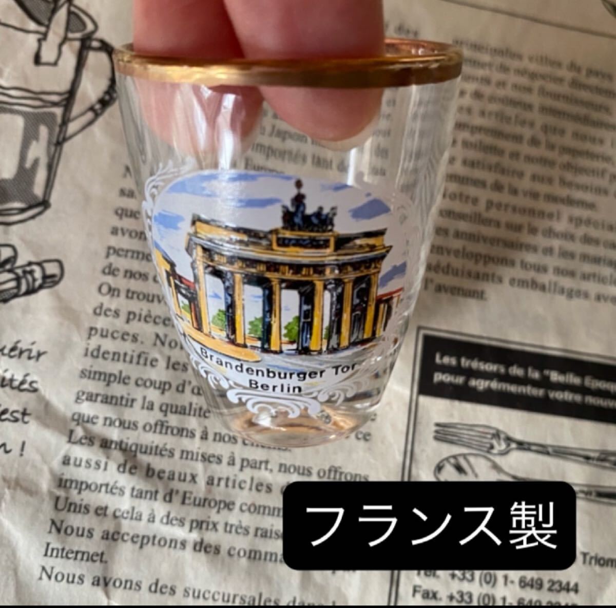 - 金塗り フランス アンティーク ショットグラス 蚤の市 食器 ブロカウント レトロ グラス コップ ミニ花瓶 西洋アンティーク