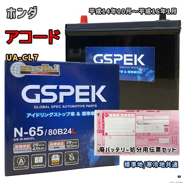 > バッテリー GSPEK W-N65/PL 廃バッテリー回収サービス付 ホンダ アコード UA-CL7 平成14年10月~平成16年1月 対応 N-65 互換 383