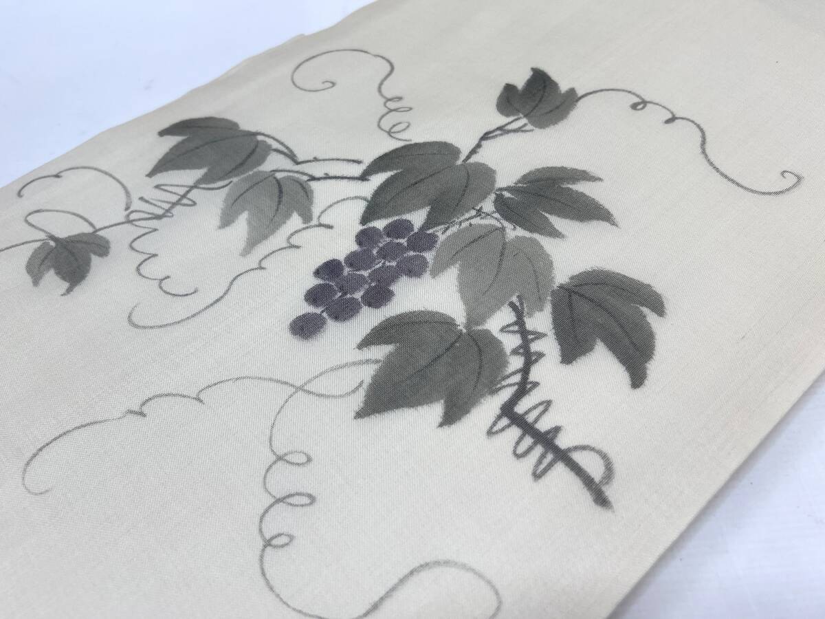 - 新品 手描き 絹芭蕉 名古屋帯 夏帯 幅約30.7cm 葡萄文様 正絹 仕立て上がり 伝統工芸 着物 芭蕉布 -あ