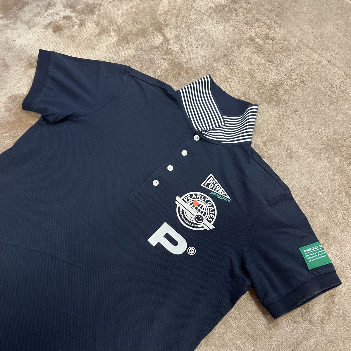 > 美品正規品 パーリーゲイツ サイズ5 ネイビー 半袖 ポロシャツ シンプル ポリカノコ素材 通気性 涼しい 高品質 送料無料