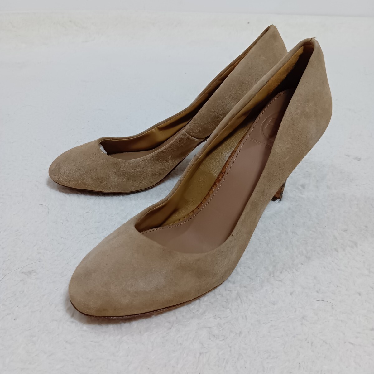 - TORY BURCH トリーバーチ スエード ヘビ革 ハイヒール ピンヒール パンプス ベージュ ヒール高8.5 7M ★1000