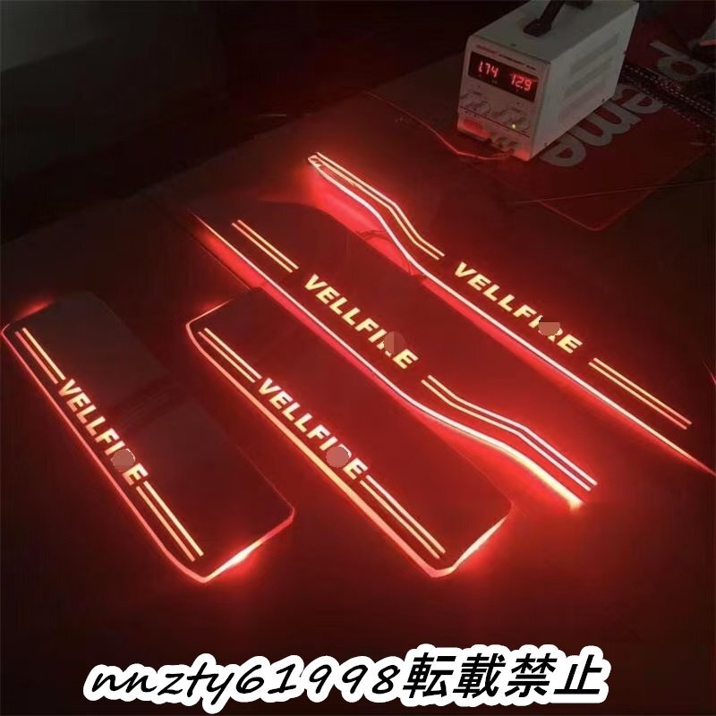 > ヴェルファイア 20系 vellfire スカッフプレート LED 青 ブルー 光る 流れる シーケンシャル ブラック 鏡面仕上げ 4ピースセット