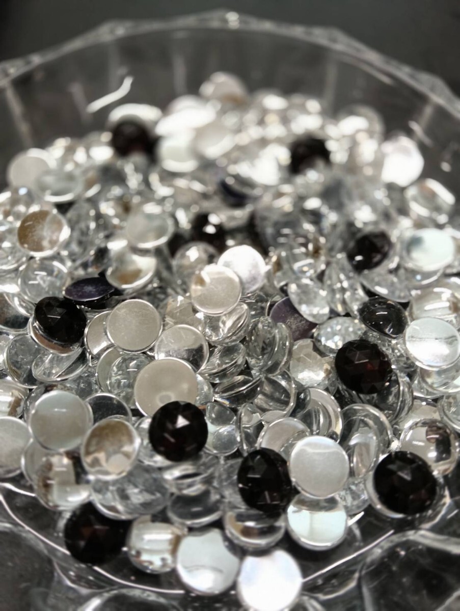 - L286☆未使用 大量 プラカボション ラウンド ドーム型 約96g 14mm 多面カット ブラック クリア ヴィンテージ パーツ アクセサリー B-465