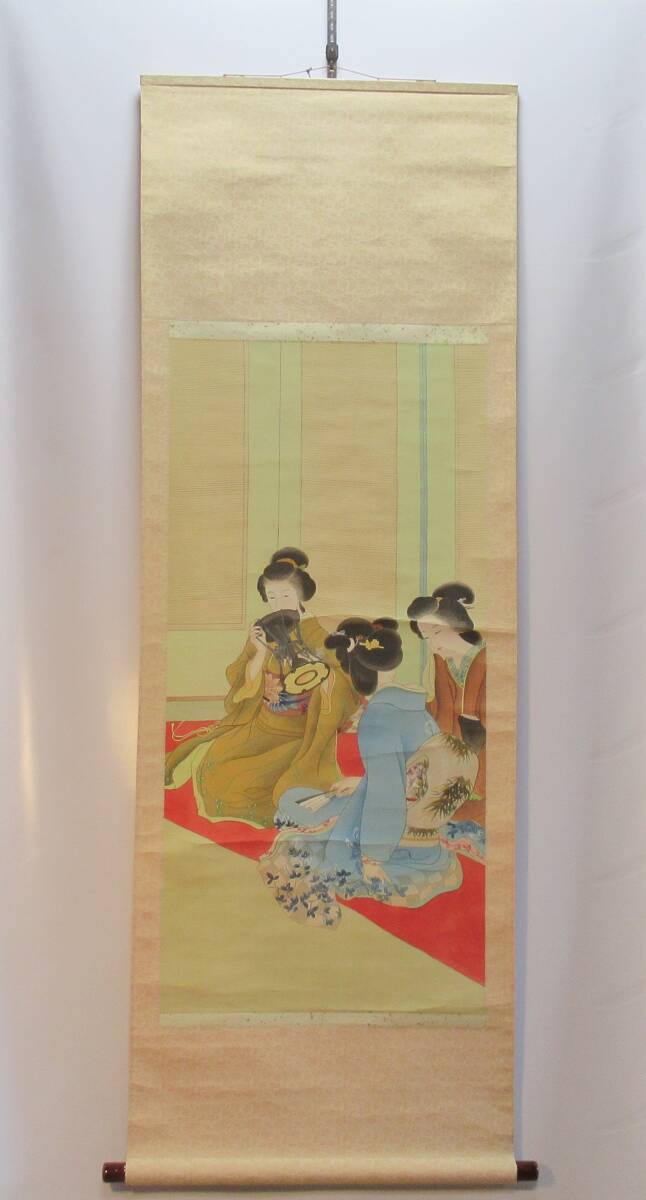 - 真作 肉筆『美人画掛軸「久保仕女」絹本175×60㎝ 陶器製軸先』浮世絵