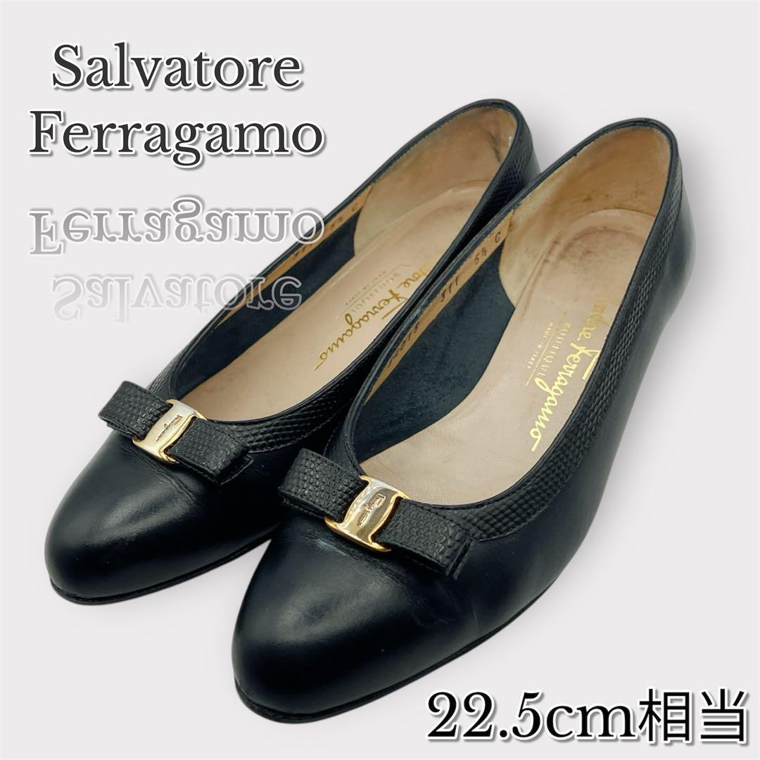 > FERRAGAMO フェラガモ パンプス ヒール 22.5cm 黒 ヴァラ 靴 4809 004821012