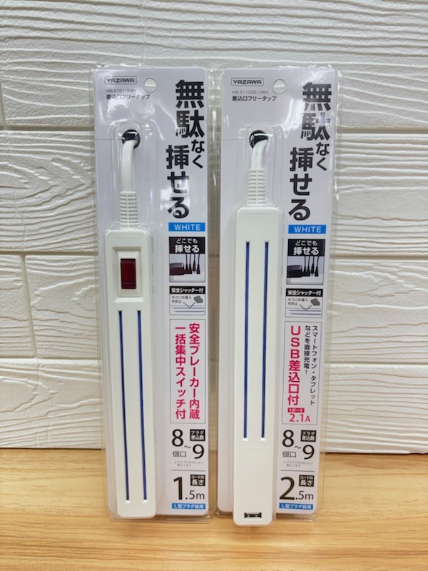 - A682 ヤザワ 無駄なく挿せる 差込口フリータップ ホワイト 2本 USB充電ポート付き 2.5m 8~9個口&一括スイッチ付 1.5m 8~9個口