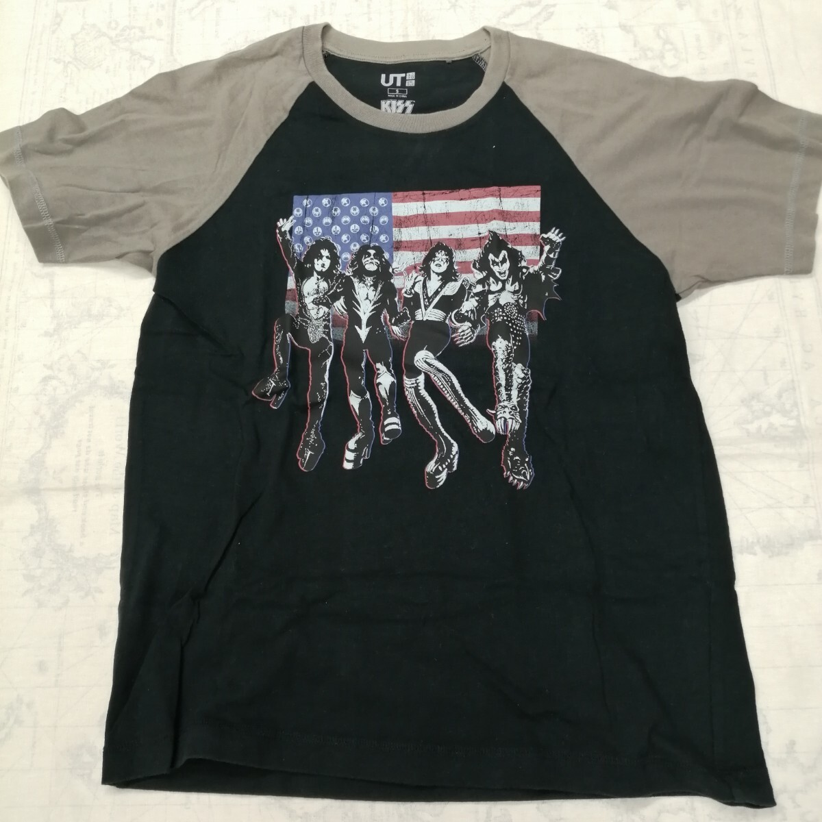 - E09 バンドTシャツ キッス ユニクロコラボ KISS ラグラン 黒×グレーブラウン