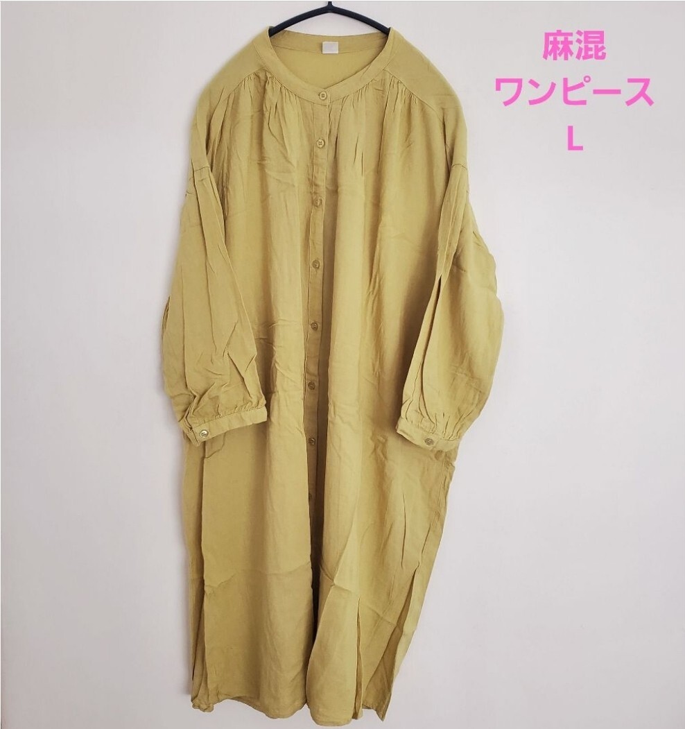 - 麻混 ワンピース Lサイズ コットン レーヨン シャツ シャツワンピース チュニック シャツ