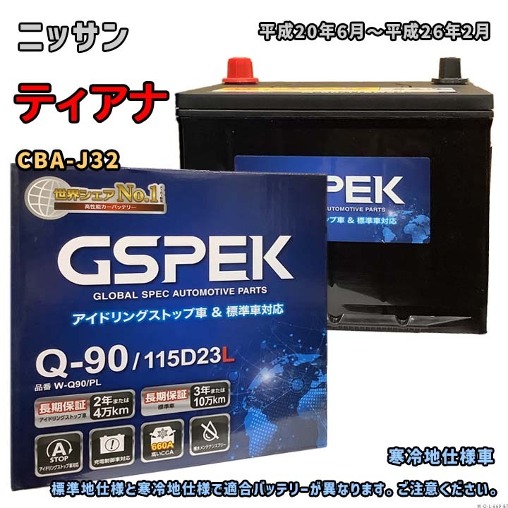- バッテリー GSPEK W-Q90/PL ニッサン ティアナ CBA-J32 平成20年6月~平成26年2月 対応 Q-85 互換 669