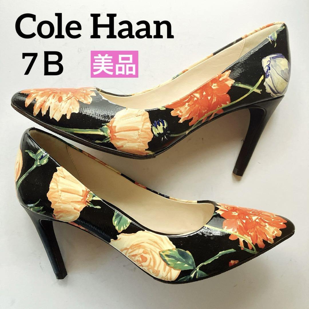 > 美品★ コールハーン パンプス ハイヒール 24cm相当 花柄 黒 靴 4779 005301012