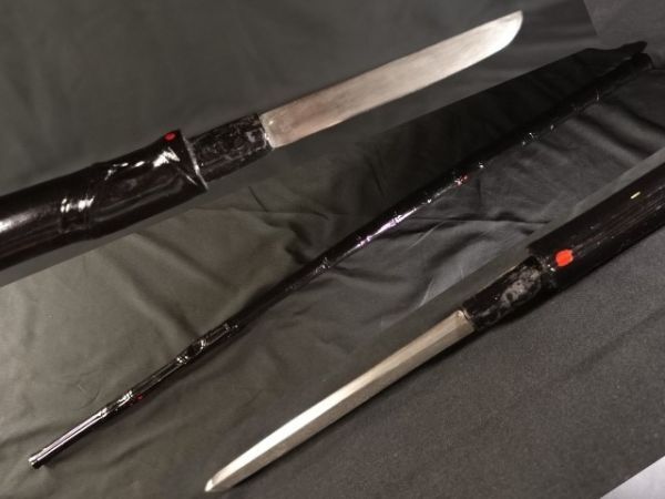 - 226 時代武具 仕込杖 短刀 槍 菊池槍 残欠 合法寸法 刃長約13.4㎝11.5㎝