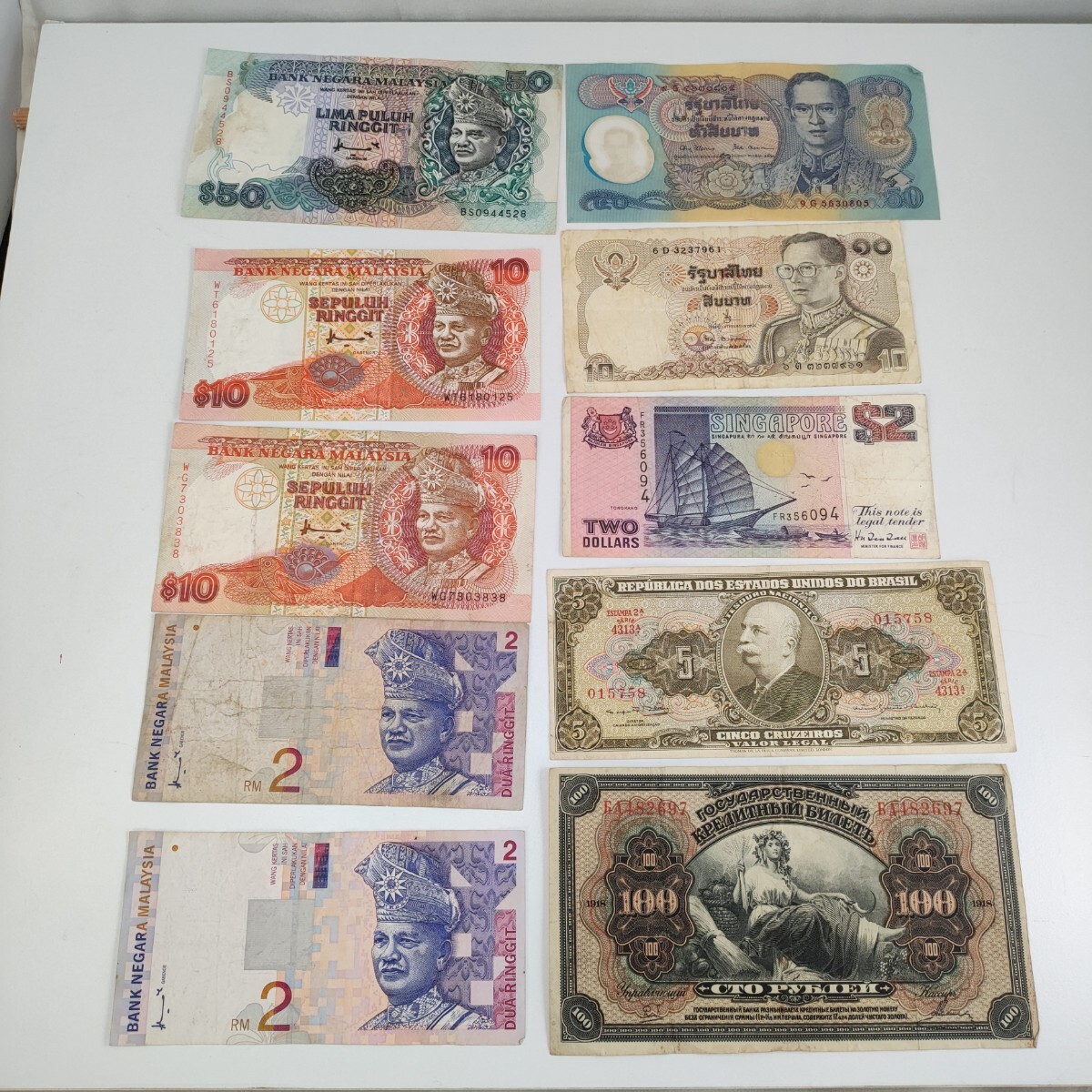 - 外国紙幣 旧紙幣セット ブラジル・シンガポール・マレーシア、ロシア まとめて