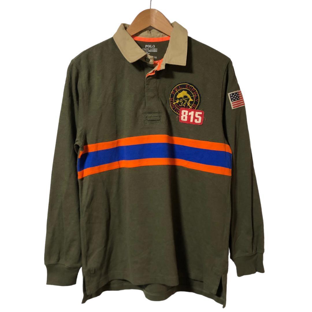 - Polo Ralph Lauren ポロラルフローレン PERFORMANCE ハンティング ポロシャツ 長袖 ワッペン 星条旗 XL(18-20) カーキ パフォーマンス M5