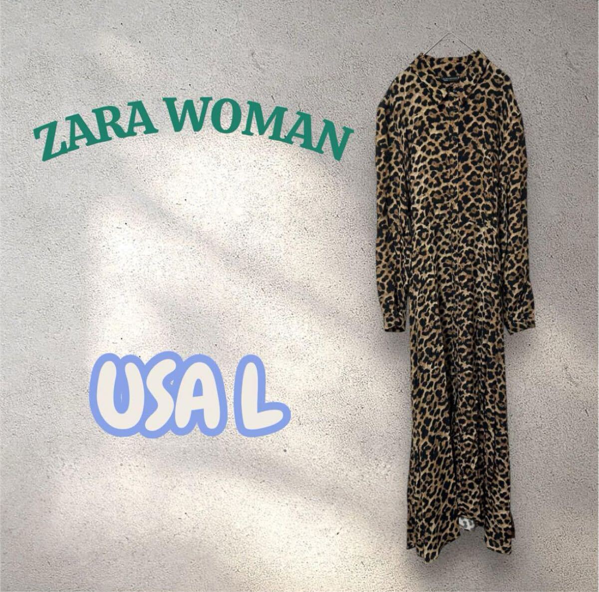 - ZARA WOMAN ヒョウ柄 ウエスト紐 シャツワンピース USA L