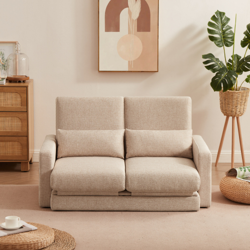 - ソファ 2人掛け 収納付き ファブリック 両側に肘掛け付き 木脚外し可能 ローソファ コンパクト ひとり暮らし カウチソファー