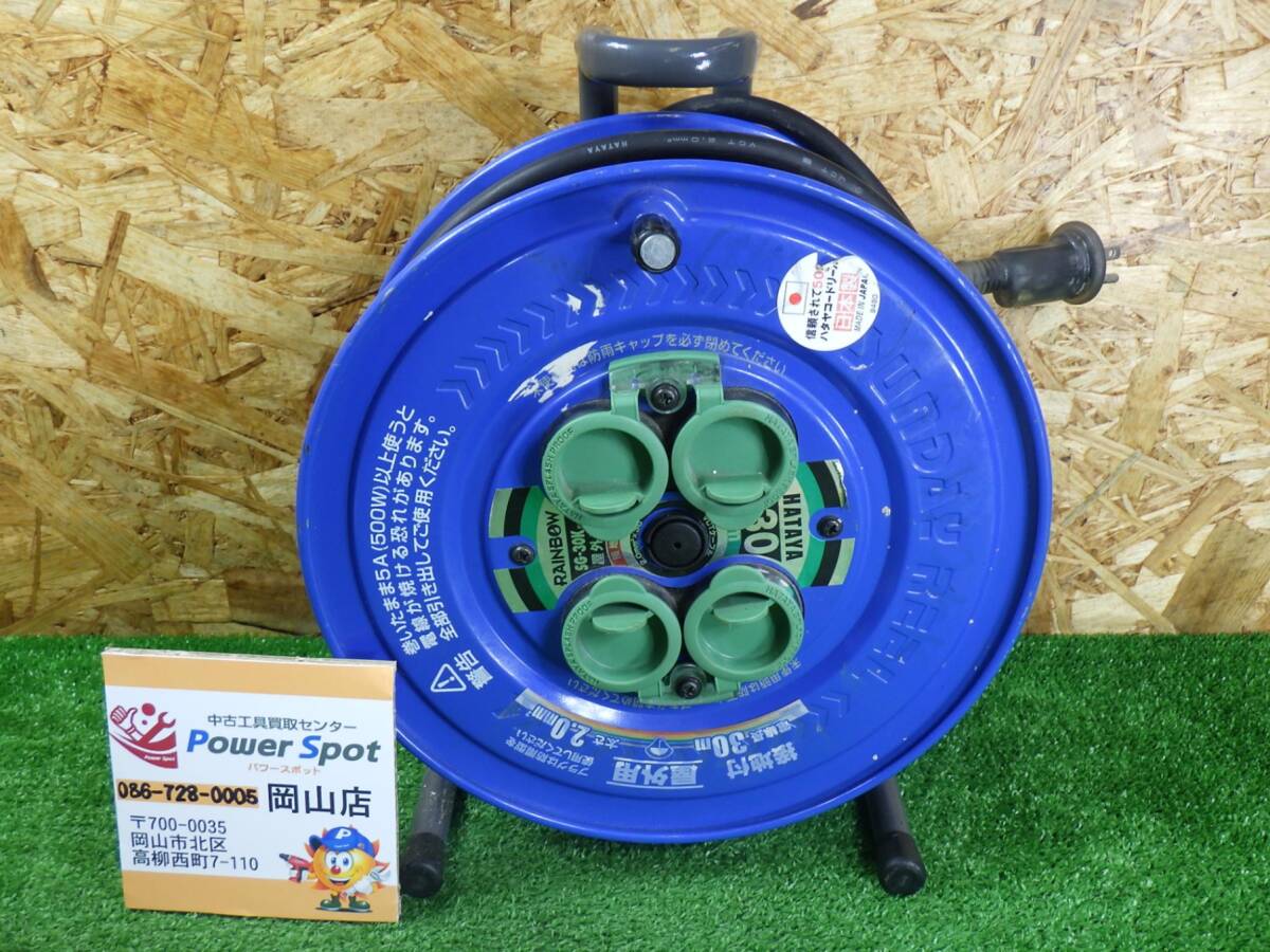 > 防雨キャップ付き★ハタヤ サンデーレインボーリール 30m 屋外用 接地付 SG-30K 畑屋製作所 コードリール 中古品 250919