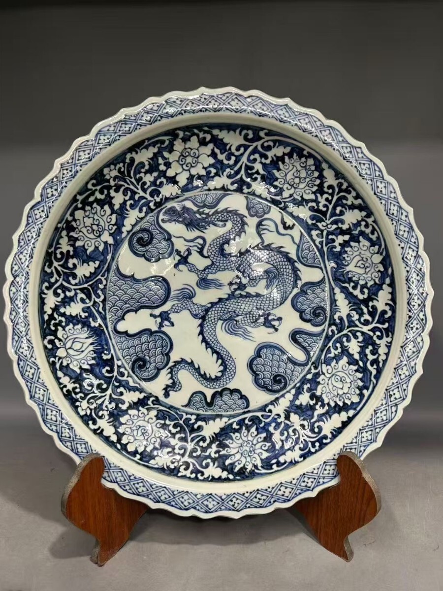 > 中国古美術 明時代 青花 明青花 大皿 皿 陶磁器 骨董 古玩 時代物 中国美術 古美術 骨董品 唐物 当時物 gt32
