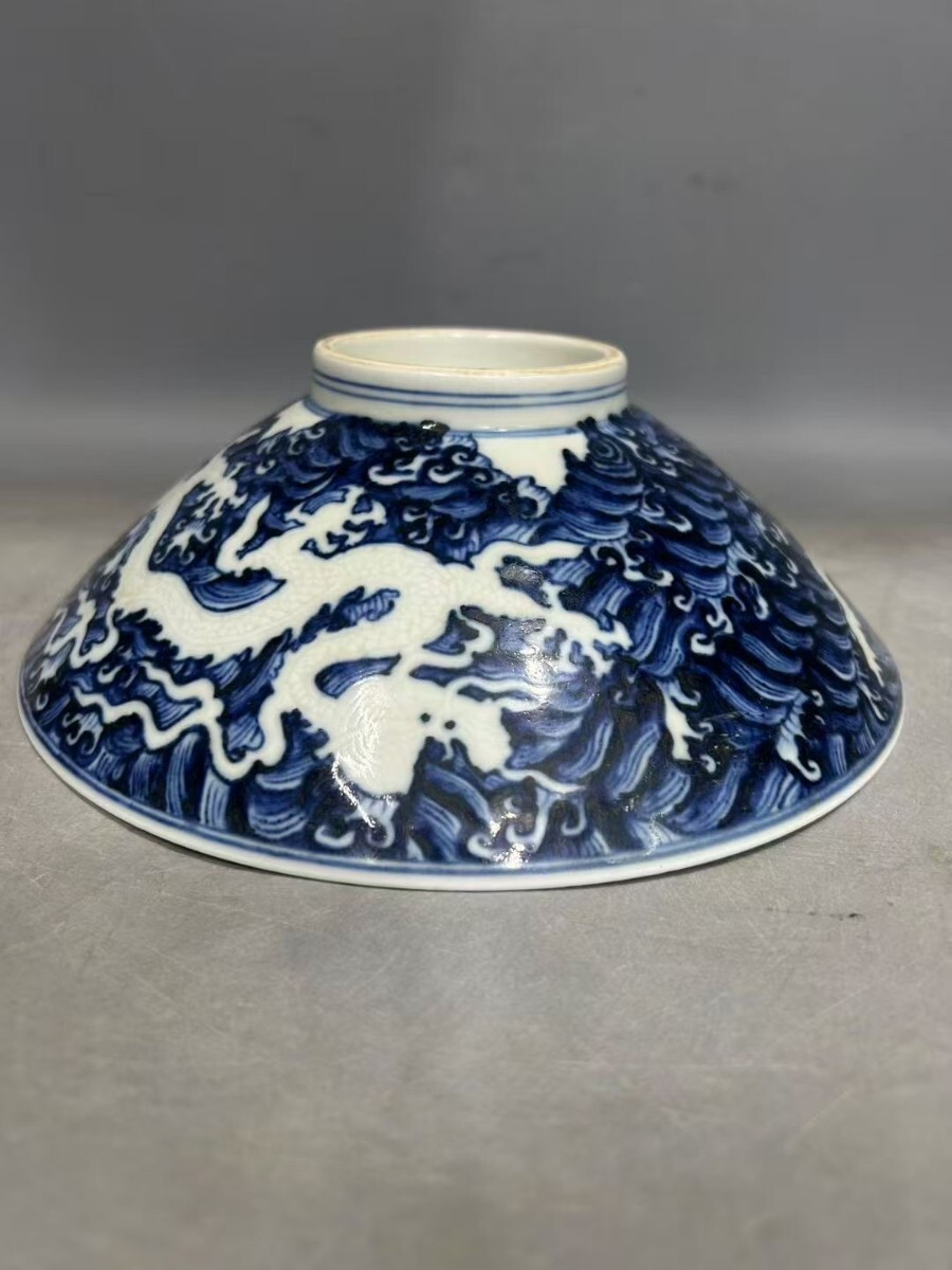 - 【積古】中国古美術 明時代 青花 斗笠 茶碗 龍紋 古玩 骨董 美術品 骨董品 時代物 古美術 唐物 当時物 置物 go13