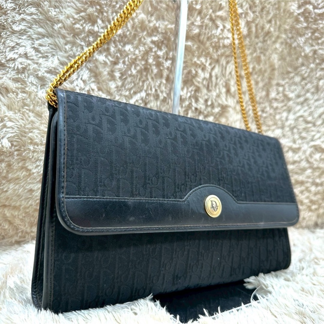 - 【美品】Christian Dior クリスチャンディオール ショルダーバッグ ブラック 黒 キャンバス トロッター オブリーク チェーン レディース