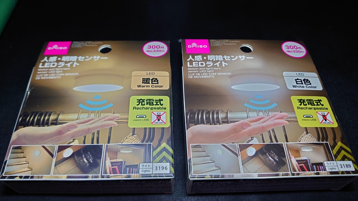 - ダイソー 人感明暗センサーLEDライト白色 2個セット 新品