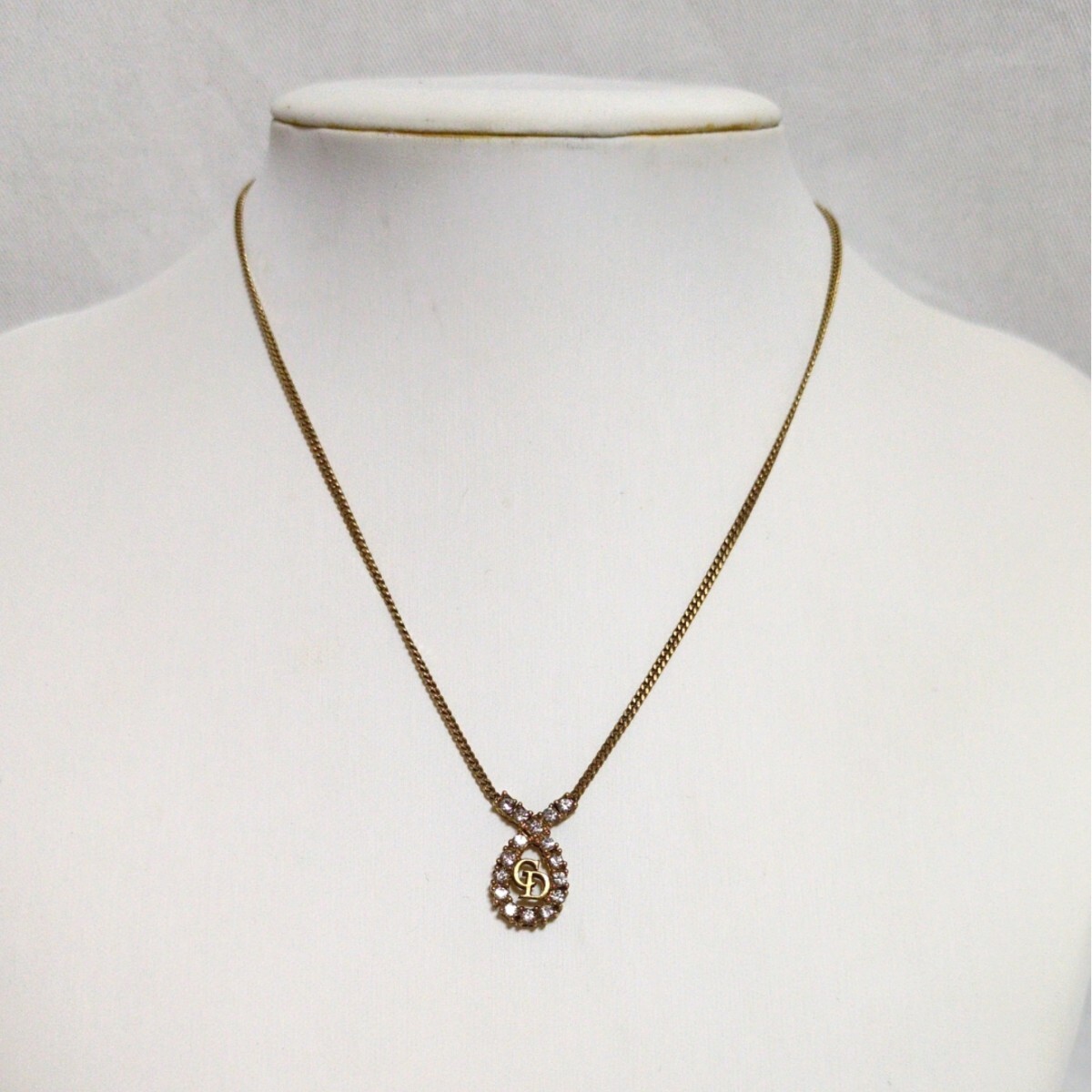 > 良品 Christian Dior クリスチャン ディオール ゴールド CD ロゴ ラインストーン ネックレス
