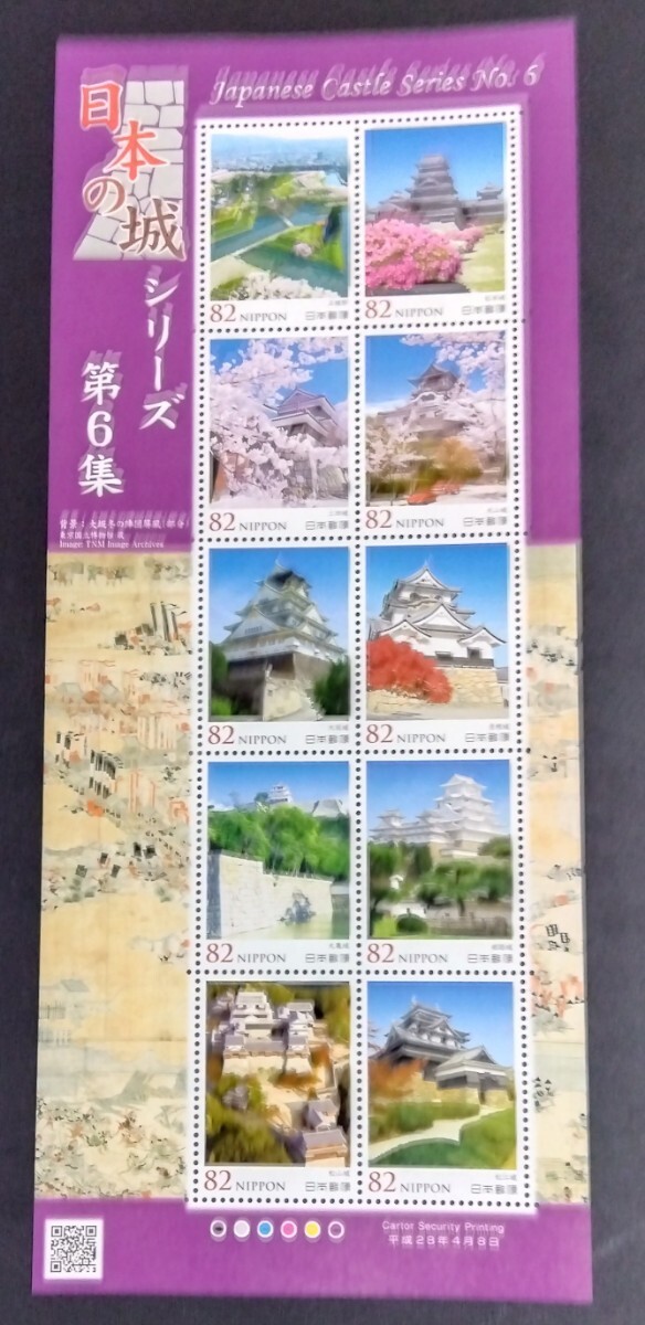 - 2016年・記念切手-日本の城シリーズ第6集(解説書付)シート
