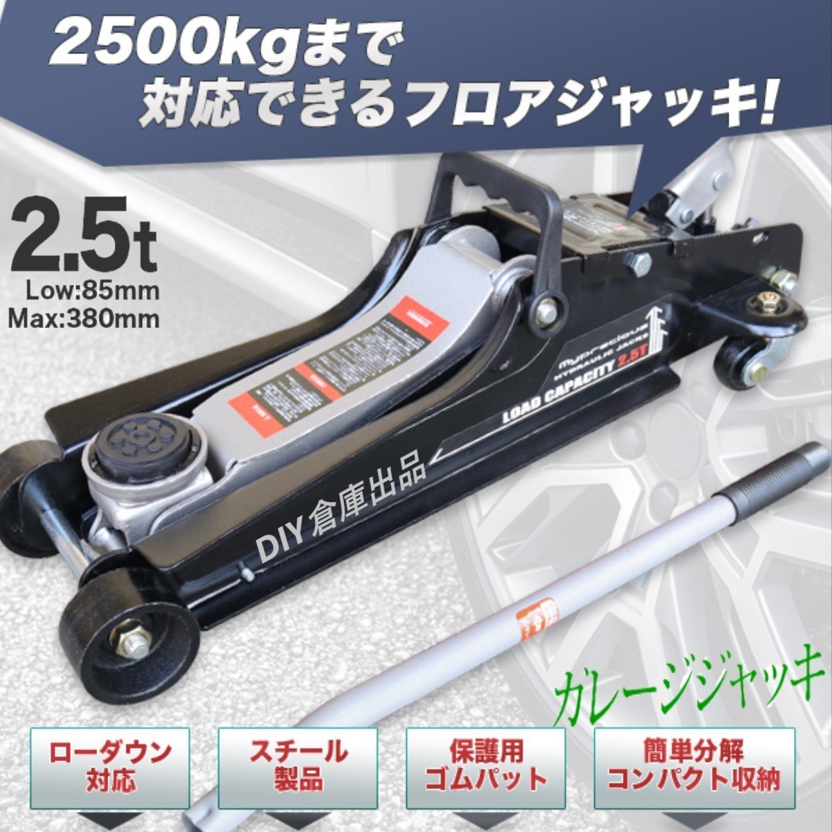 - ★保護ゴムパット付 フロアジャッキ 2.5t 油圧式 ガレージジャッキ 2500kg キャスター付 ローダウン対応 ★送料無料