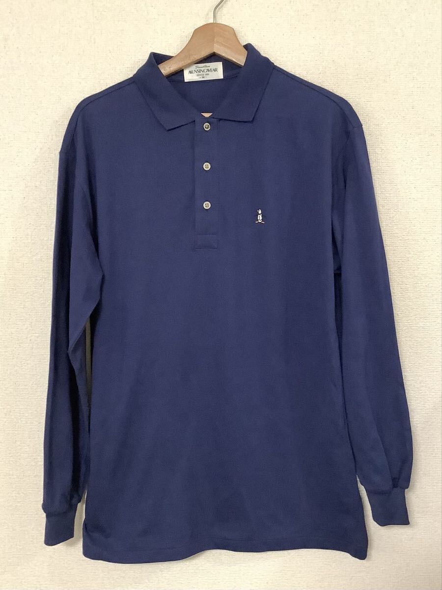 - MUNSINGWEAR マンシングウェア ゴルフウェア 長袖ポロシャツ 鹿子 コットンポロ ネイビー 紳士 メンズ 古着 M マンシング
