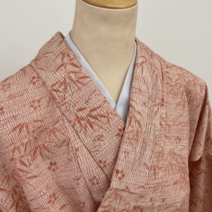 - 女性用 着物 未仕立て 竹柄 レディース 反物 仮絵羽 おしゃれ 小紋 紬 赤系