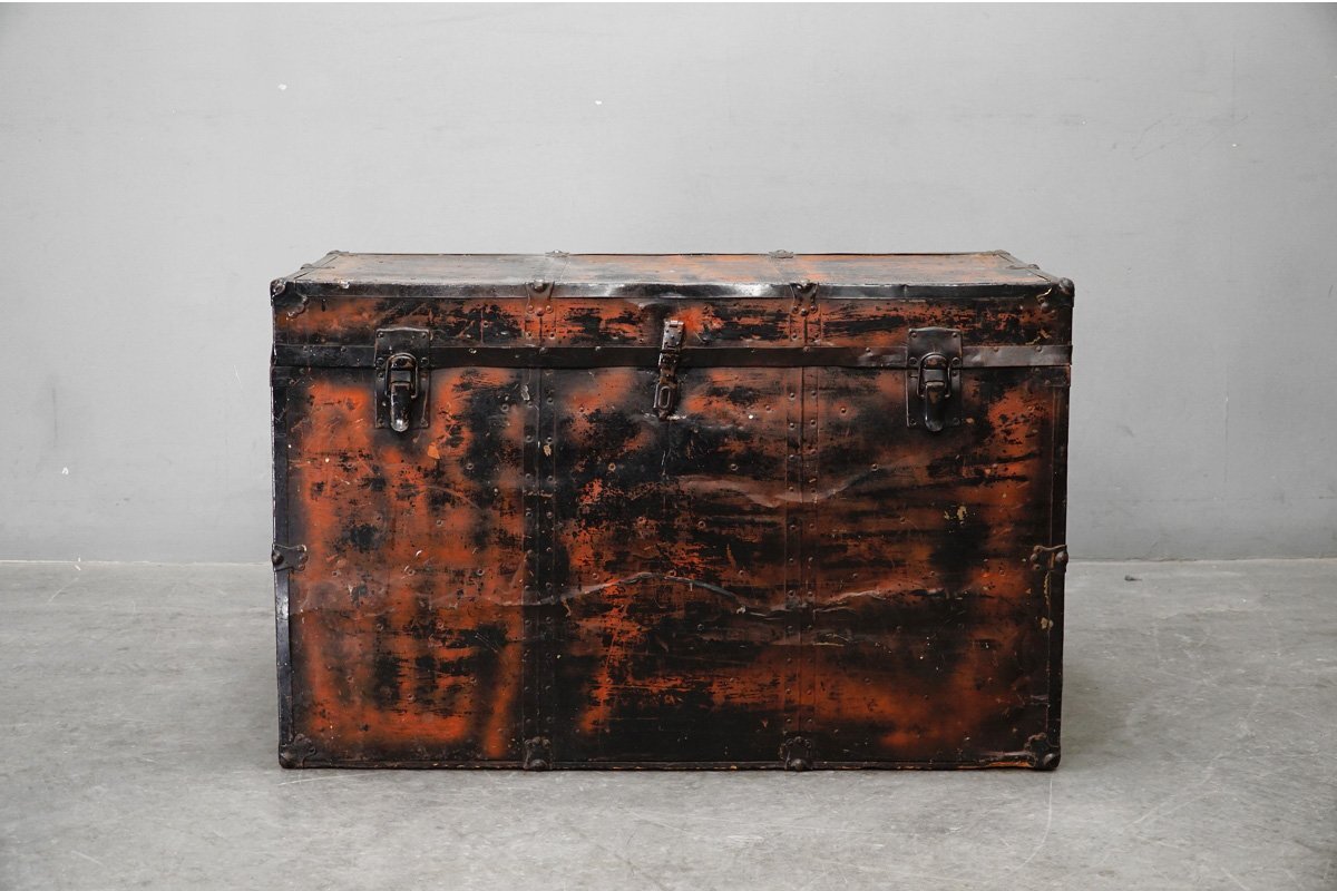 > USA アンティーク 船舶 大型トランク テーブル 衣装ケース スチール製 店舗什器 ディスプレイ 収納 キャビネット ヴィンテージ010711