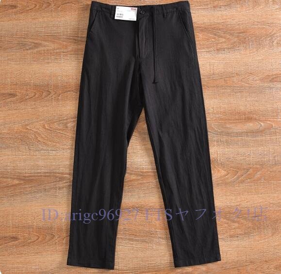 - ★新品M ブラック リネン ストレートパンツ イージーパンツ 九分丈 綿麻混 通気 メンズ ビジネス サマー ウエストゴム カジュアル