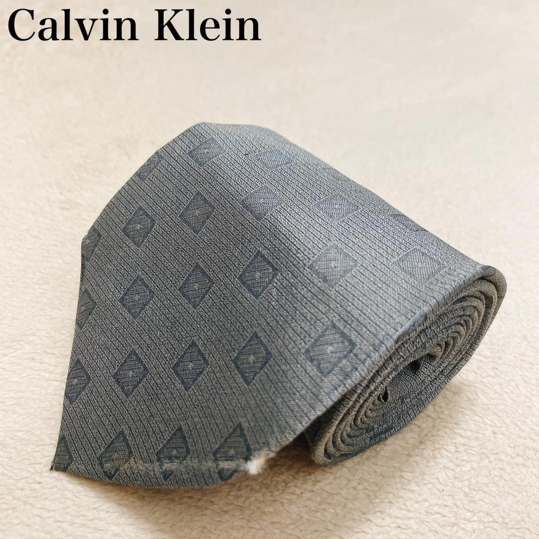 > Calvin Klein カルバンクライン シルク ネクタイ グレー 総柄 モノグラム 日本製 ビジネス スーツ フォーマル 高級感 エレガント 4-10