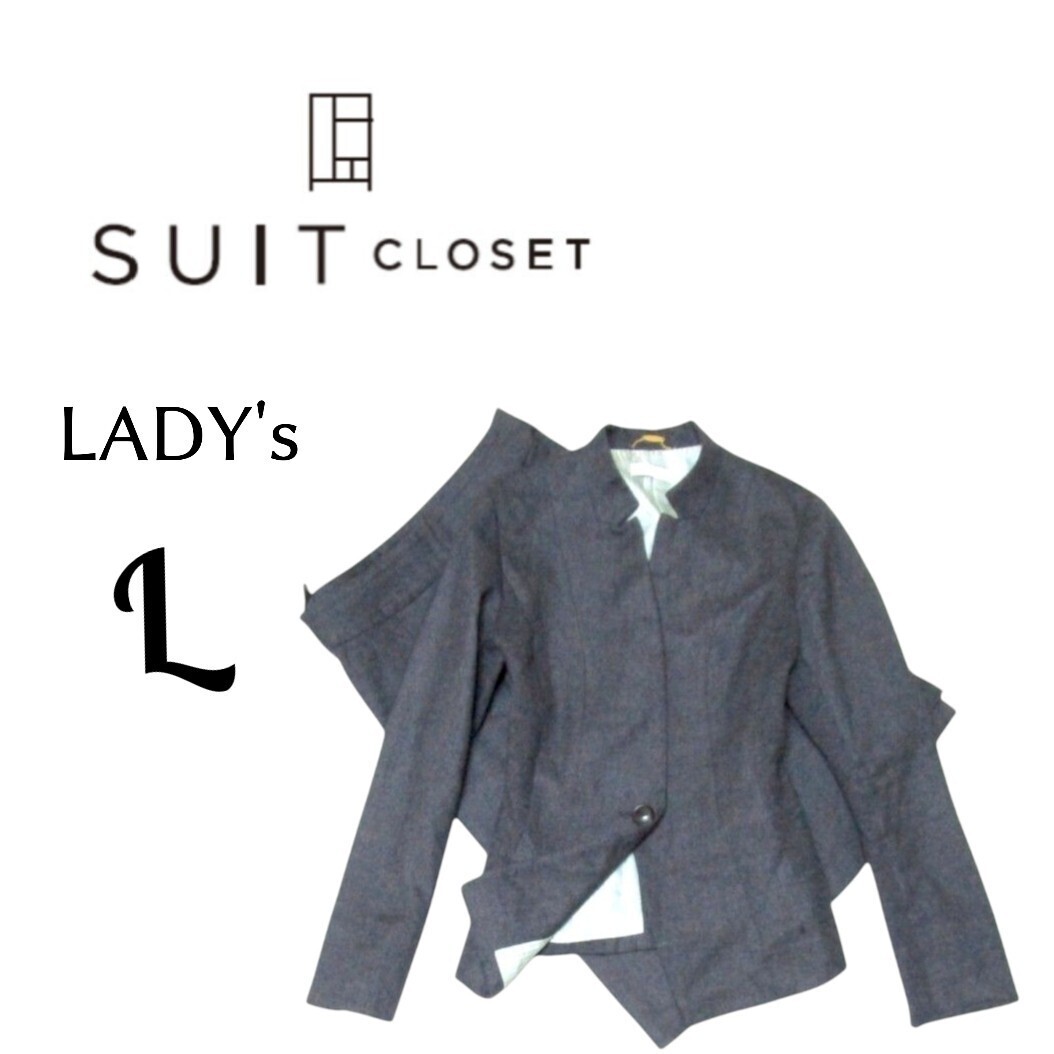- 送料込み 美品レディースLサイズ SUIT CLOSET スカートスーツ上下セット gray 春秋冬