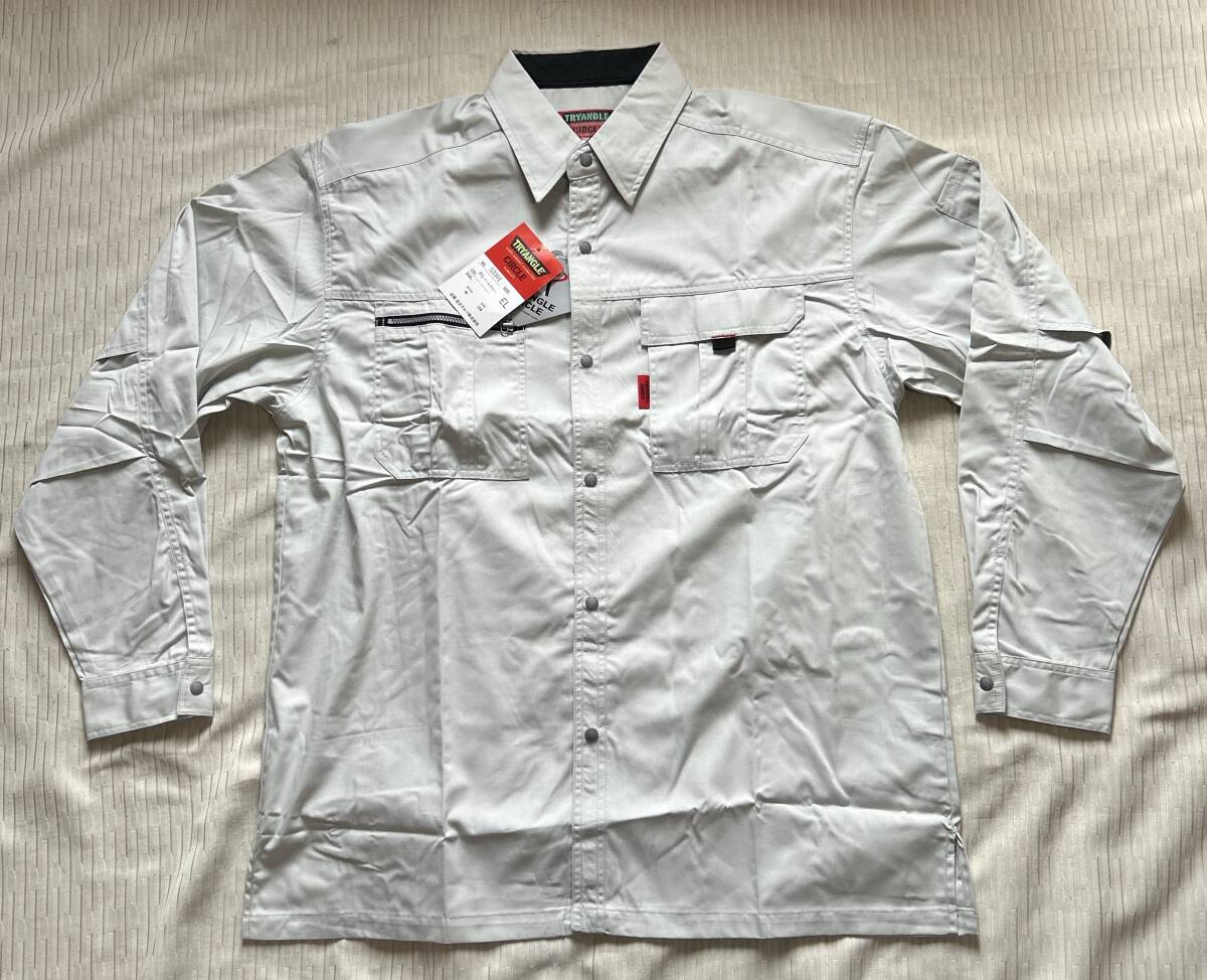 - 作業シャツ 作業服上 3L (EL)サイズ パールグレー 富士ダルマ製 強度耐久性 制電素材////未使用品