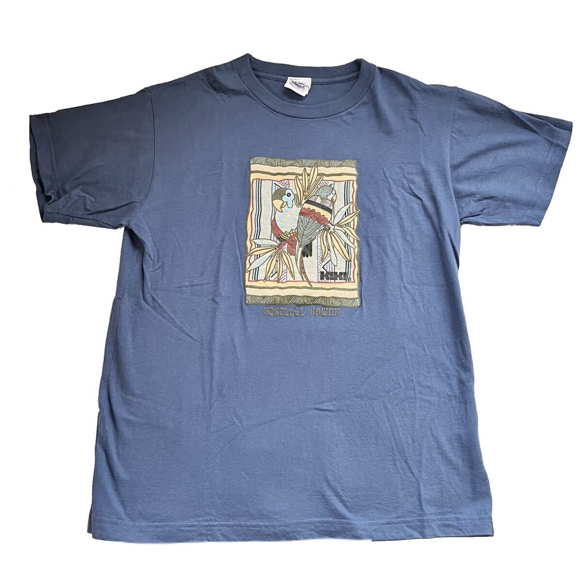 > KIKI 半袖 Tシャツ プリント 半袖Tシャツ ブルー系 Hawaii ハワイ ホノルル 鳥 Mサイズ 綿 100% メンズ