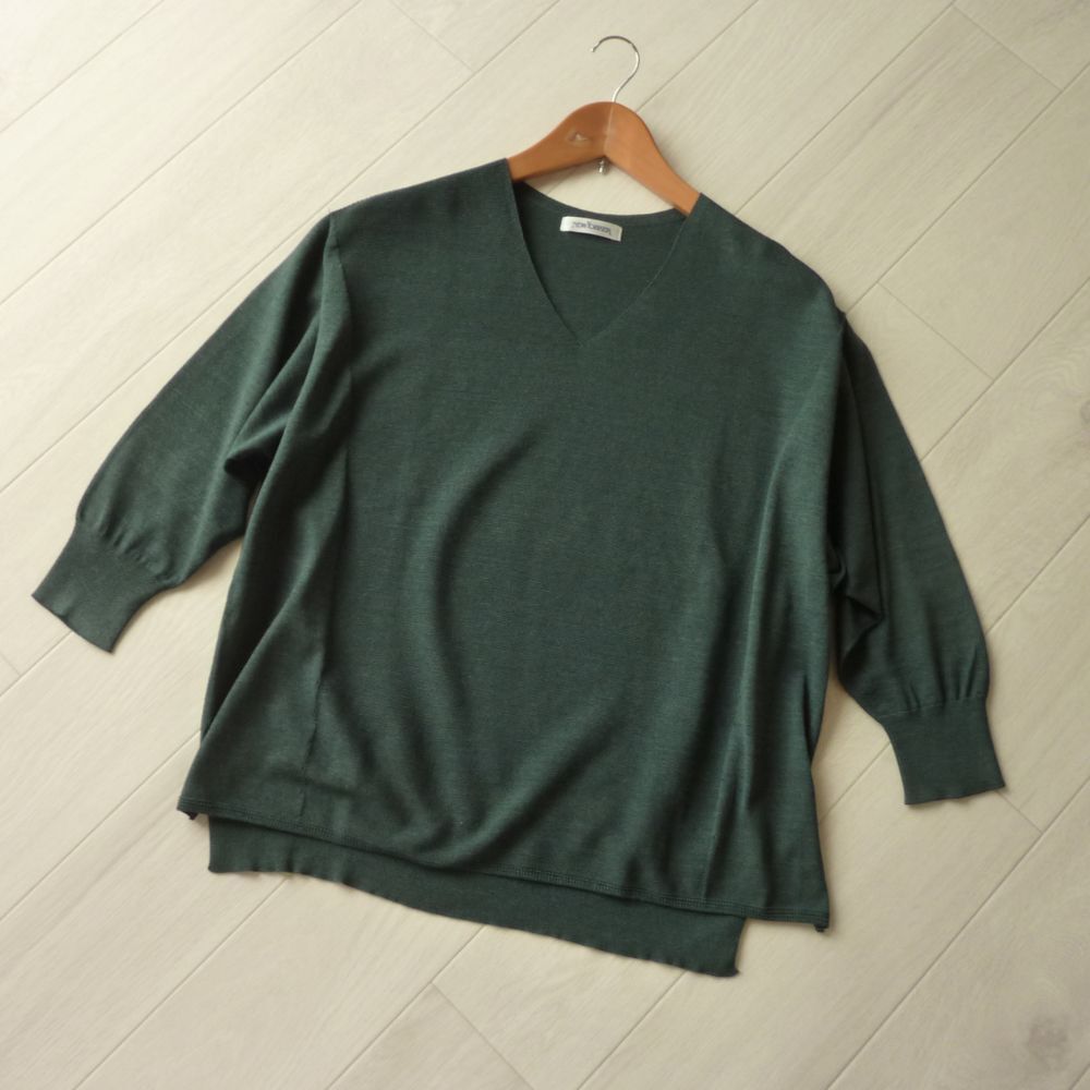 - ニューヨーカー NEWYORKER 半端袖 ニット カットソー グリーン系 日本製 レディース トップス サイズM
