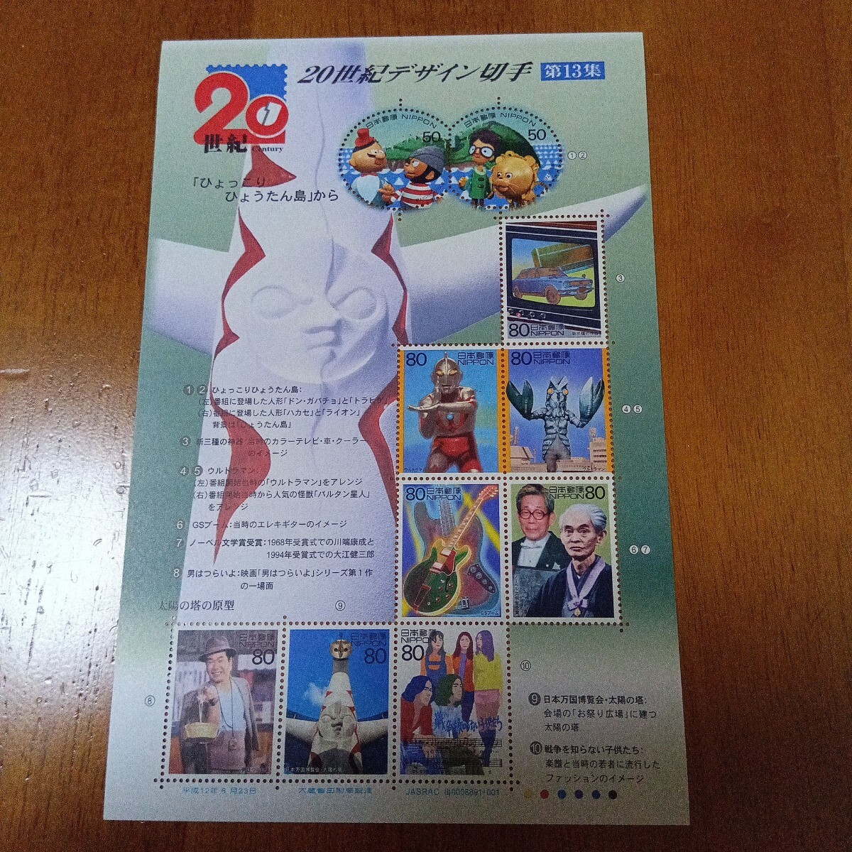 > 20世紀デザイン切手 第13集 切手シート 1点 未使用 保管品☆ヒーロー、ドラマ、イベント切手☆ 送料無料 匿名発送