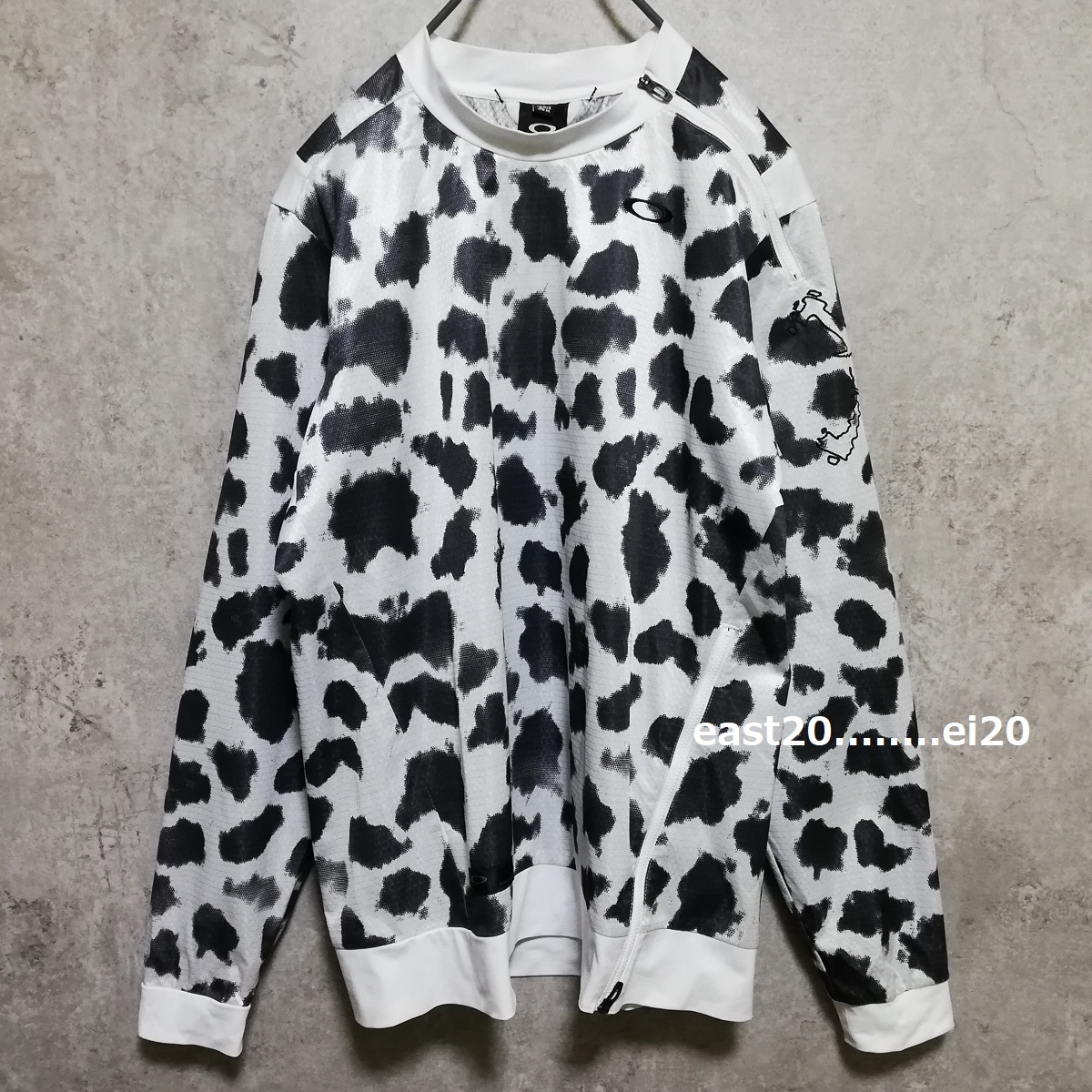 > OAKLEY SKULL MOTTLE LIGHT CREW オークリー スカル 刺繍 メンズ ゴルフ 牛柄 グラフィック 総柄 プルオーバー 防風 ジャケット M 送料無料