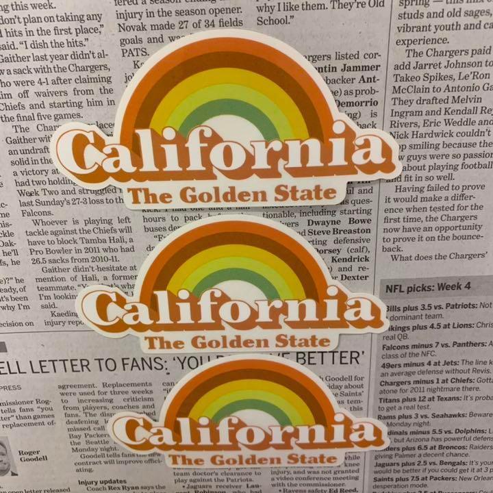 - ステッカー3枚セット/California カリフォルニア ゴールデンステート アメリカン雑貨 シール 防水 車 バイク 自動車 装飾 レインボー