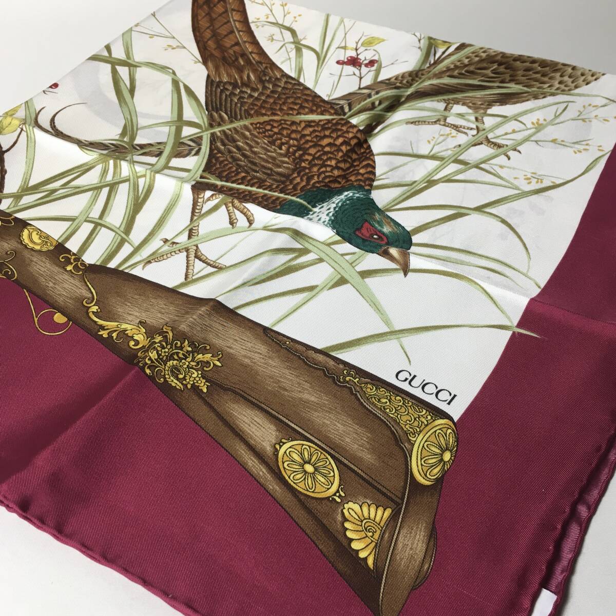- 78B271|グッチ スカーフ シルク ボルドー シェリーライン タグあり