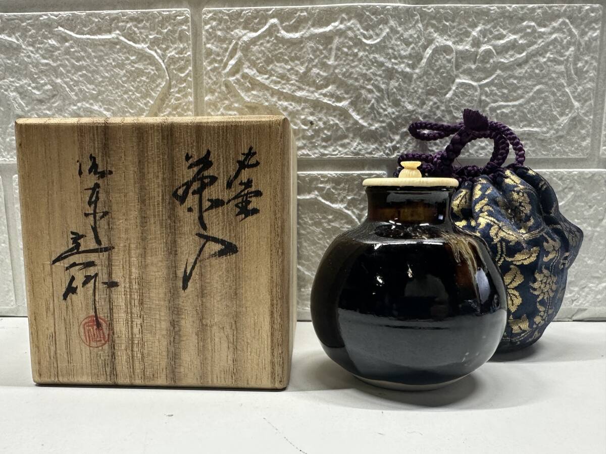 - S6190 桶谷定一作 丸壺 茶入 仕覆・共箱付き 美品