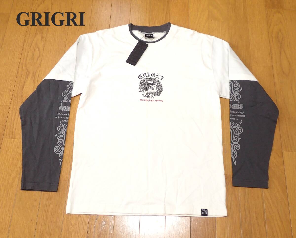 > ☆新品タグ付き ☆GRIGRI ☆昇り龍 ☆和柄 ☆ロングスリーブシャツ ☆長袖Tシャツ ☆オフホワイト×グレー ☆メンズ ☆M