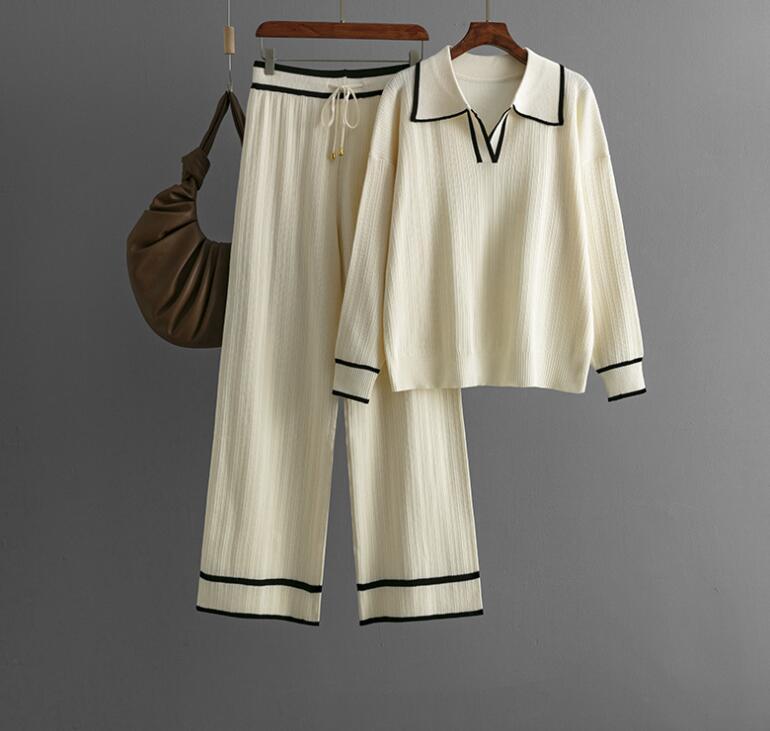 - 342 パンツスーツladiesレディース ◇ 魅惑Styleセクシー ◇sexy 上質 ニット素材 秋冬 アイボリー