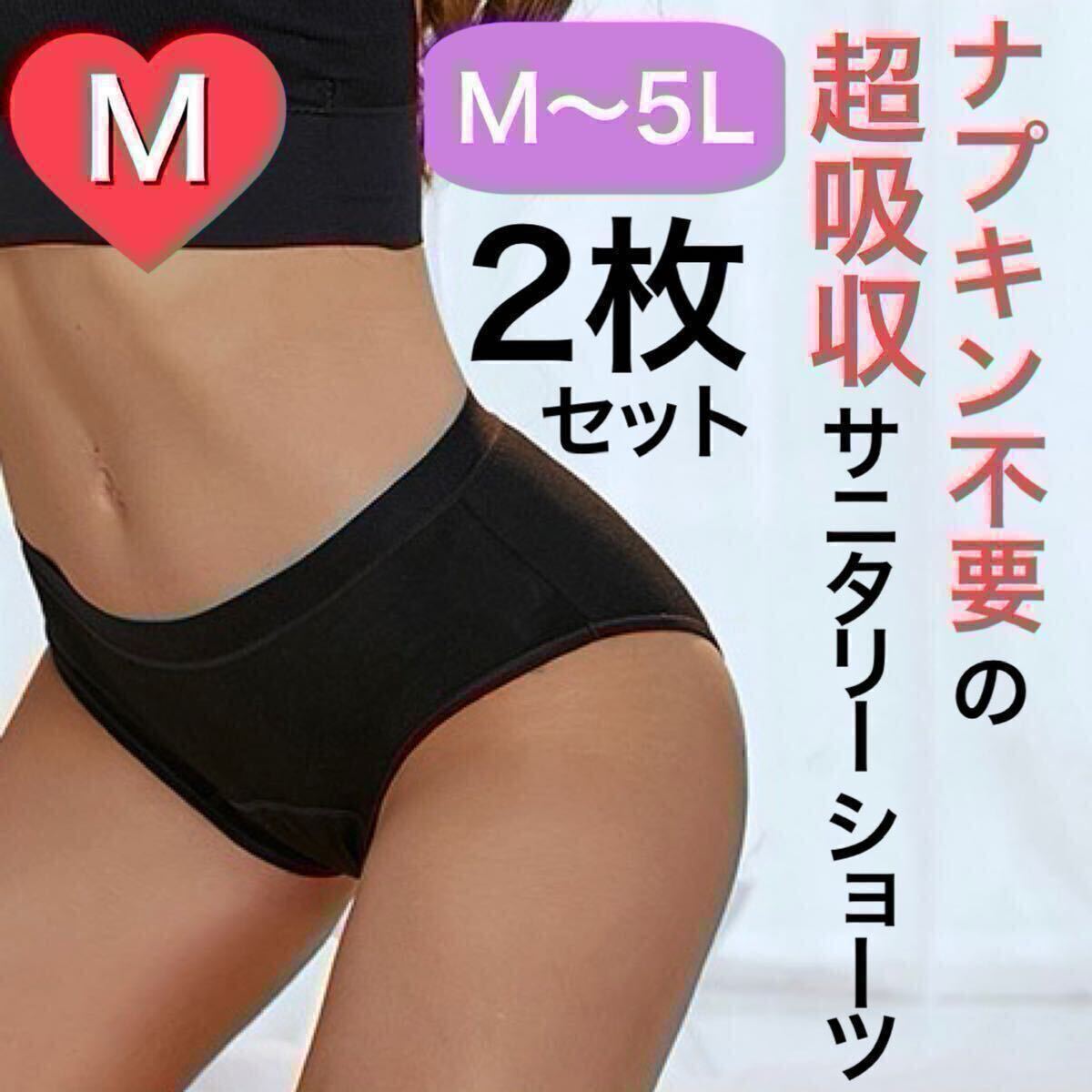 > M サイズ サニタリー ショーツ 生理 吸水 ナプキン不要 産褥 タンポン ブラック 黒 2枚 セット 吸収 Mサイズ サニタリーショーツ