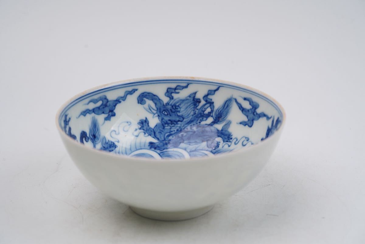 - 【竹河】中国古美術 明時代 成化年製 陽刻 青花 茶碗 時代物 唐物 古玩 骨董 藏出 置物