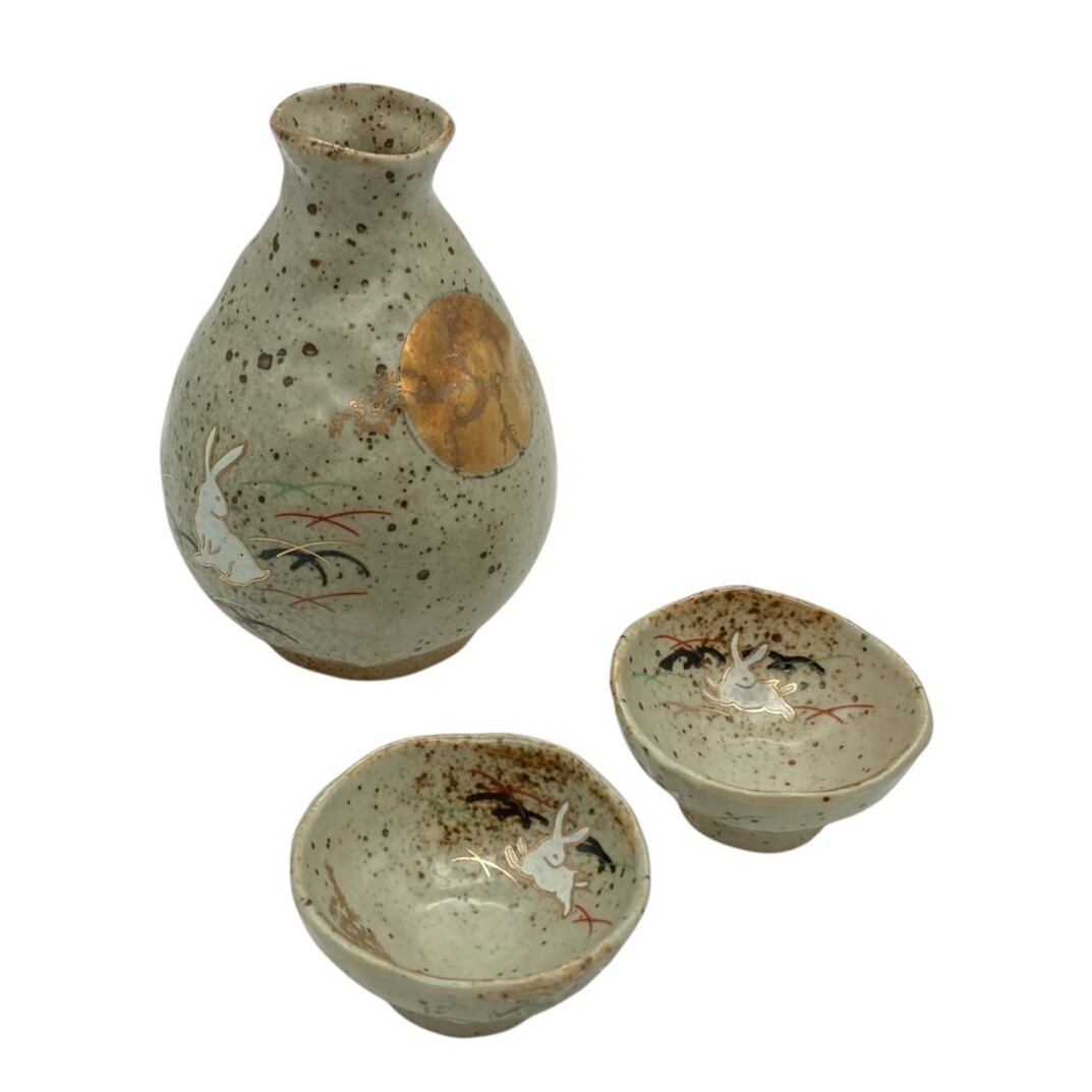 - ★有田焼 半酒器セット 寿山作 徳利 ぐい呑 盃 猪口 陶磁器 金彩兎 アンティーク 3点セット