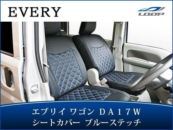 - エブリイワゴン DA17W シートカバー レザー ダイヤカット ブルーステッチ H27.2~ 1558
