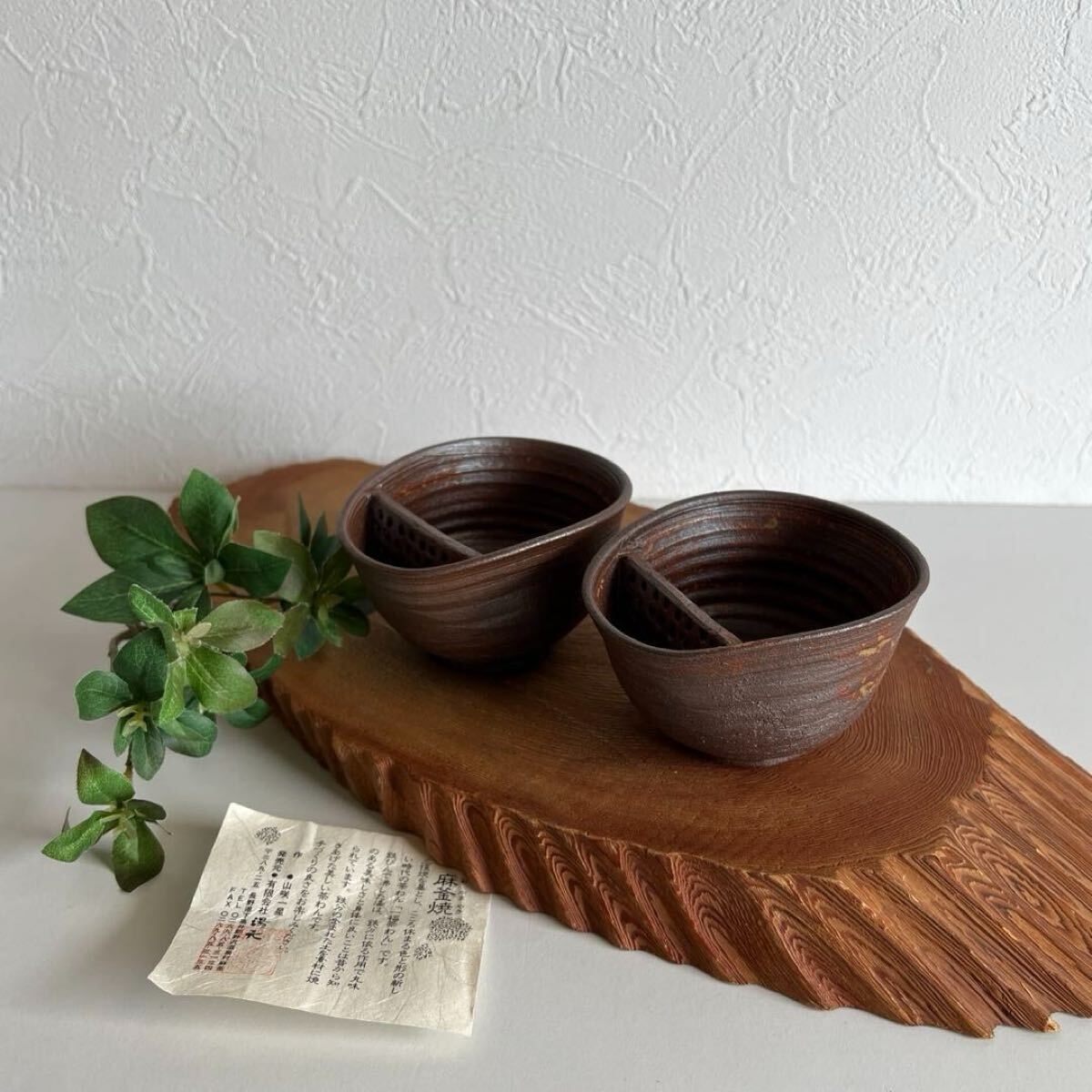 - wasabi k890 麻釜焼 こころ休まる色と形の新しい時代の茶わん「一福茶わん」2個セット 鉄分の含まれた土を素材に焼きあげた美しい逸品