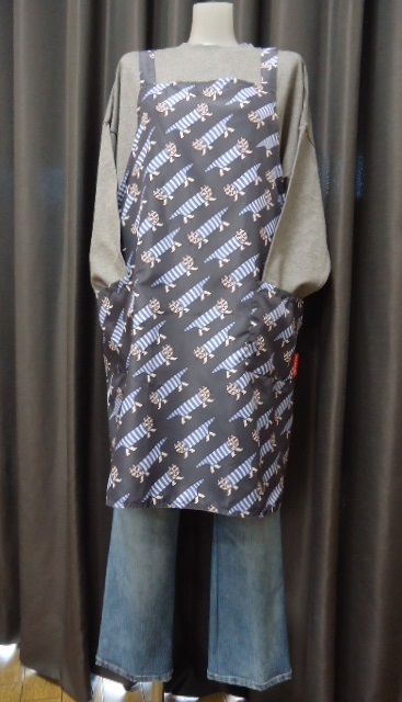 - ポケッタブルエプロン 背ひもウエストボタン グレー色 ★LISA LARSON★ ポリエステル1005 M~L寸 着丈90cm 61252